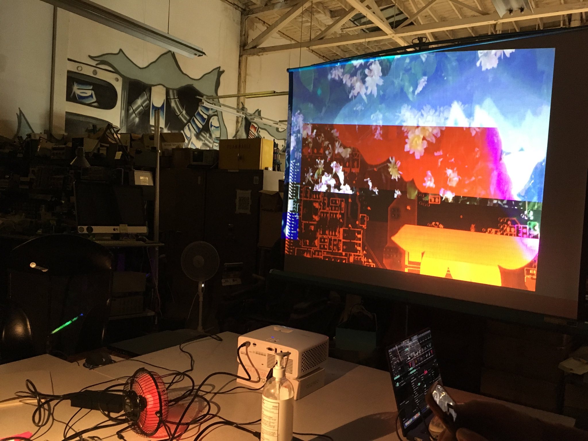 Announcing a Friday night of AV Art, light projections, coworking and darkness!